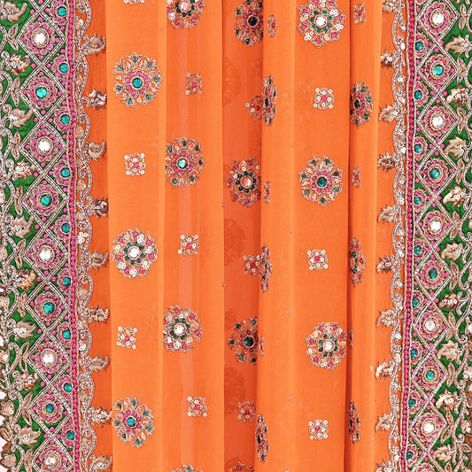 Indian Pre-owned Heavy orange Pure Georgette Silk Hand Embroidered Dupatta Designer By Manish Malhotra Bridal Wear Dabka Zardozi Veil Hijab