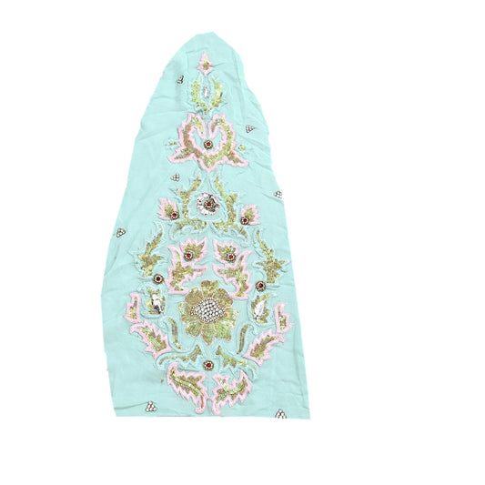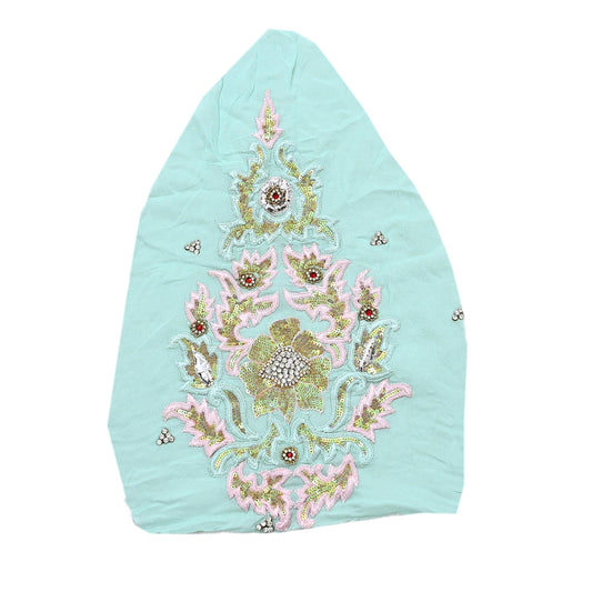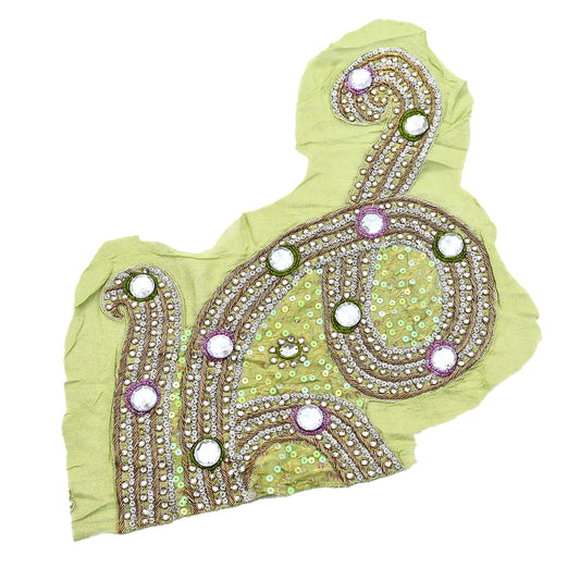 Indian Vintage Green Pure Georgette Silk Appliques Set of 1 Hand-Embroidered Patches with Zardozi, Dabka ,for Craft Journals 18.5x10.5"