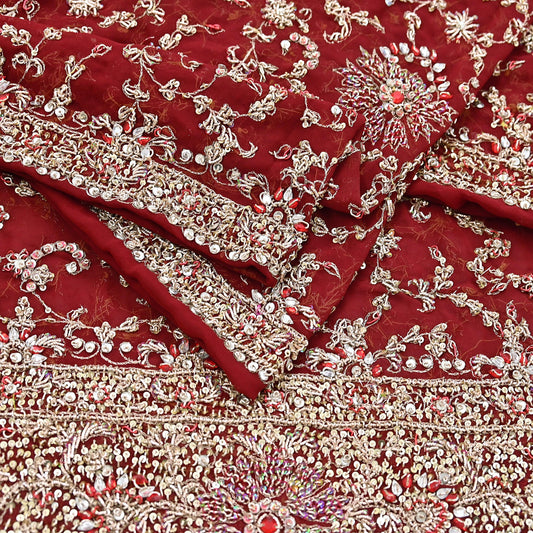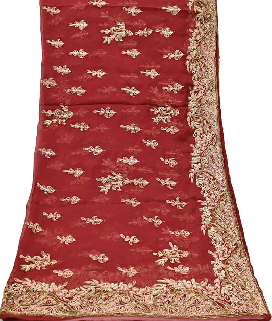 Indian Vintage Heavy Bridal Maroon Dupatta Pure Georgette Silk Long Stole Hand Embroidered Scarf Zardozi/Dabka Wedding red Hijab veil Boho