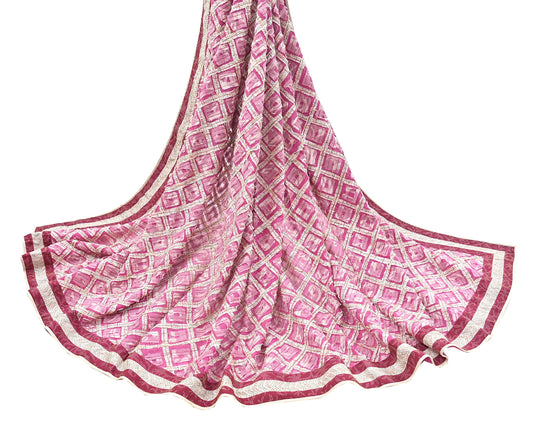 Indian Vintage Dupatta Pink Long Stole Pure Georgette Silk Hand Embroidered Scarves Veil Hijab Floral Zari Dabka Zardozi