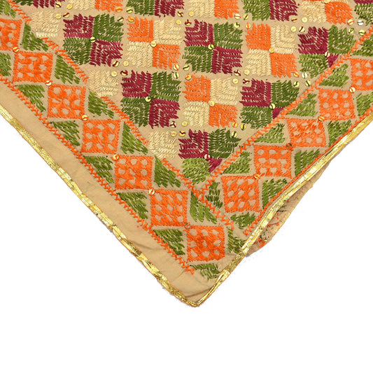 Indian Vintage Dupatta beige pure cotton Long Stole Hand Embroidered Bagh Phulkari Stole Scarves Fringes Party wear