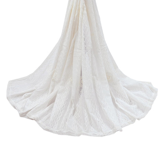 Indian White Vintage Dupatta Long Stole Hand Embroidered stole Pure Cotton Indian Scarves Veil Wrap Soft Floral