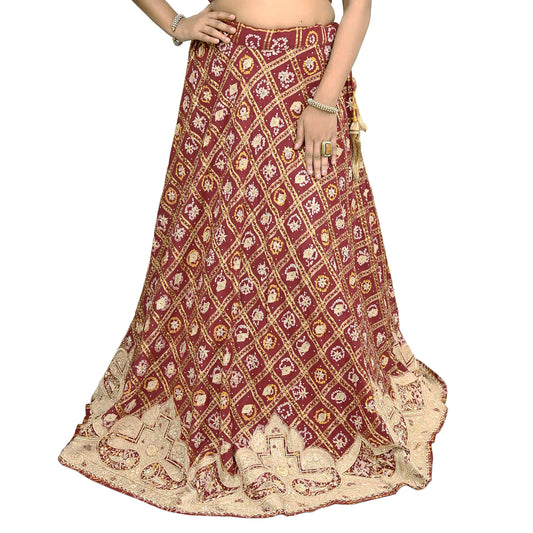 Indian Vintage Heavy Wedding Maroon Pure Cotton Hand Embroidered Bandhani Gharchola Lehenga/Skirt Bridal Wear Zardozi/ Dabka, Zari