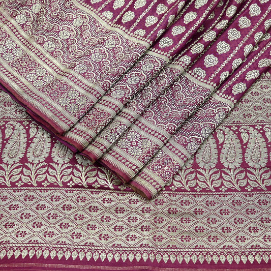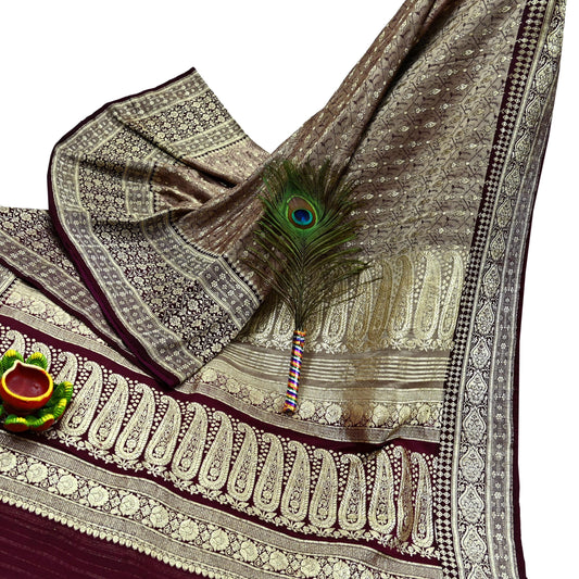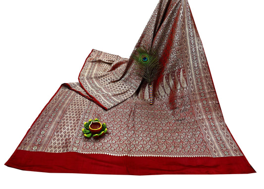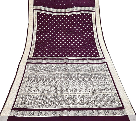 Vintage Gray & Maroon Banarasi Silk Saree Pure Satin Silk Handwoven Tanchoi Fabric with Paisley Weave 5 Yard Dressmaking Craft Material