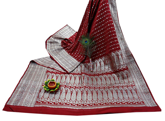 Indian Vintage Sari Heavy Maroon Pure Organza Silk Woven Brocade Banarasi Sarees Zari 5Yd Ethnic Fabric Dress Making Wedding Sarees