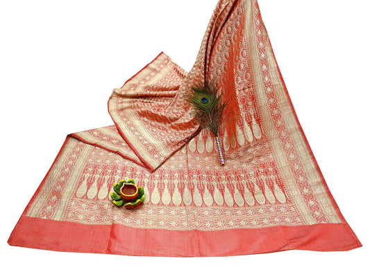 Indian Vintage Heavy Sari Peach Wedding Pure Silk Woven Banarasi Sarees Zari 5Yd Craft Fabric Dress making Crafting Wedding/Bridal Wear