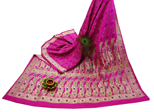 Indian Vintage Sari Magenta Heavy Pure Satin Silk Woven Banarasi Brocade Saree Zari 5Yd Ethnic Dress making Crafting Bollywood