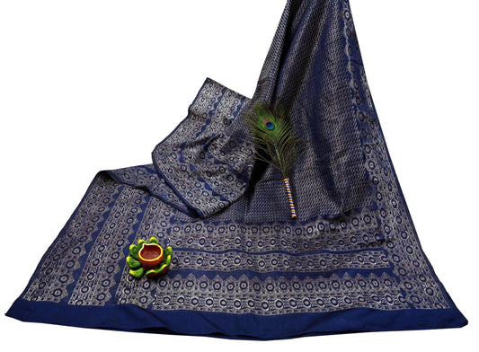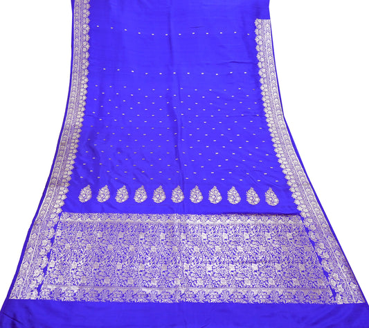 Vintage Royal Blue Banarasi Silk Saree Pure Satin Silk Brocade Fabric with Gold Zari 6 Yard Indian Wedding Craft Material