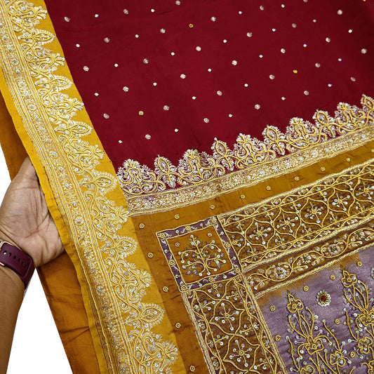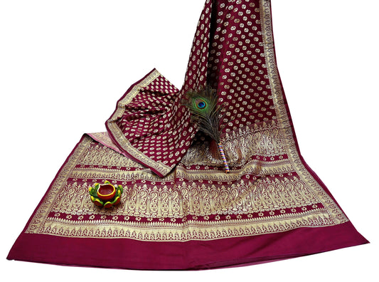 Indian Vintage Sari Maroon Heavy Wedding Pure Satin Silk Woven Banarasi Brocade Sarees Zari 5Yd Dress making Crafting Quilting