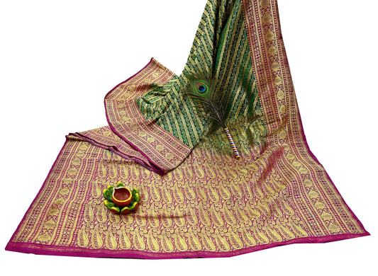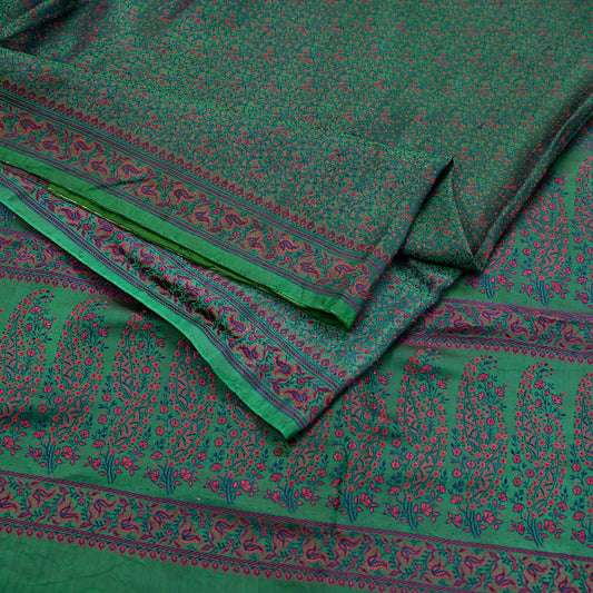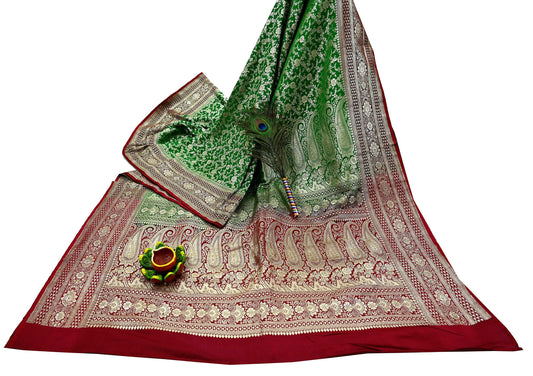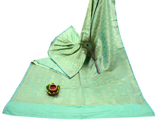 Vintage Green Banarasi Silk Saree Pure Satin Silk Handwoven Tanchoi Fabric with Paisley Weave 5 Yard Dressmaking Craft Material