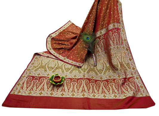 Indian Vintage Sari Red Heavy Wedding Pure Satin Silk Woven Banarasi Brocade Saree Zari 5Yd Craft Fabric Ethnic Dress making Crafting