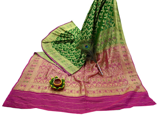 Vintage Green Banarasi Brocade Saree: Heavy Zari Woven Silk Fabric