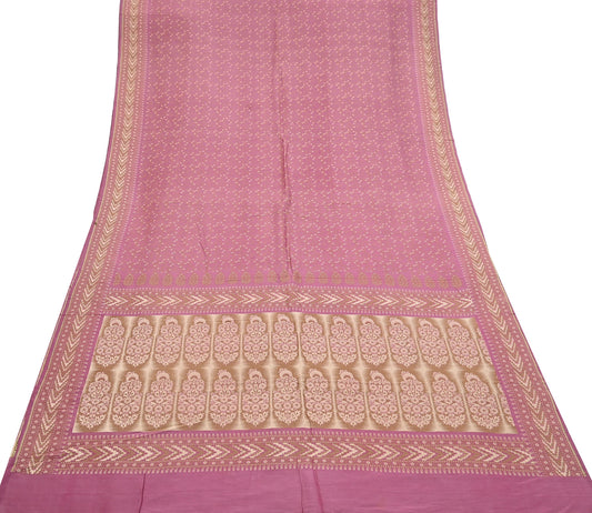 Vintage Pink Banarasi Silk Saree Pure Handwoven Brocade Zari Fabric 5Yd Indian Wedding Craft Material Upcycle Sewing Textile
