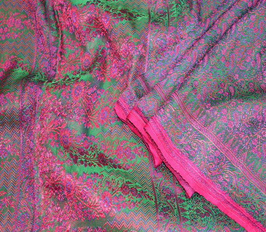 FREE EXPEDITED SHIPPING Indian Vintage Green Heavy Saree Pure Satin Silk Woven Tanchoi Indian Sari Fabric Floral 5Yard Soft