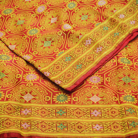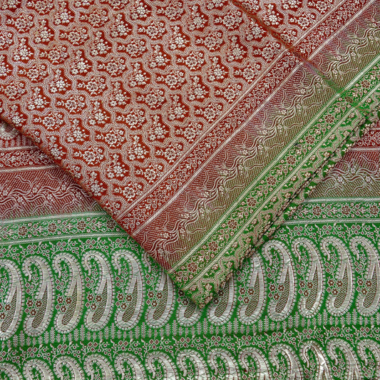Indian Vintage Heavy Wedding Sari Red & Green Pure Satin Silk Woven Banarasi Brocade Sarees Zari 5Yd Fabric Upcycle Crafting Dress Making