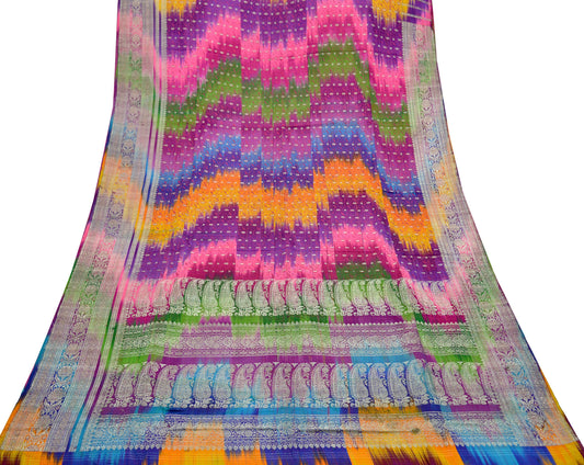 Indian Vintage Multi Heavy Wedding Sari Pure Satin Silk Woven Banarasi Tanchoi Sarees 5Yd Craft Fabric Golden Zari Ethnic Dress Making