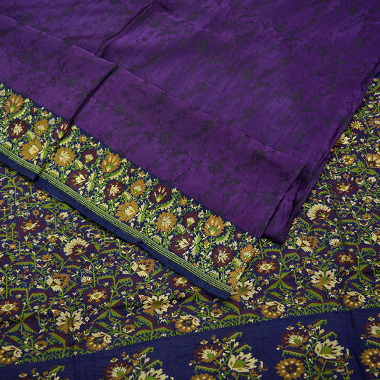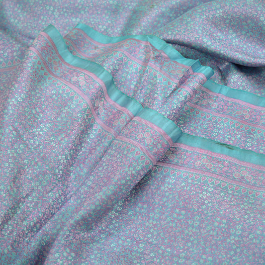 Indian Vintage Heavy Sari Purple & Blue Pure Satin Silk Woven Tanchoi Sarees 5Yd Craft Fabric Soft Wedding Sarees Upcycle For Crafting Used