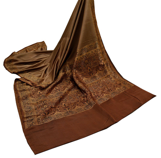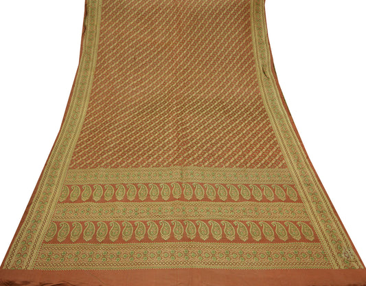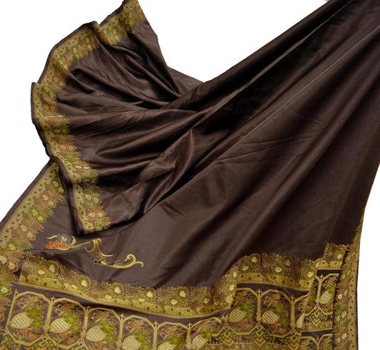 Indian Vintage Sari Brown Heavy Wedding Pure Satin Silk Woven Brocade Tanchoi Sarees Golden Zari 5Yd Dress Making Crafting Quilting