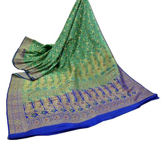 Vintage Heavy Wedding Green Sari Hand Embroidered Banarsi Brocade Sarees Zari/Zardozi/Dabka 5Yd Dress making Crafting Quilting