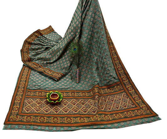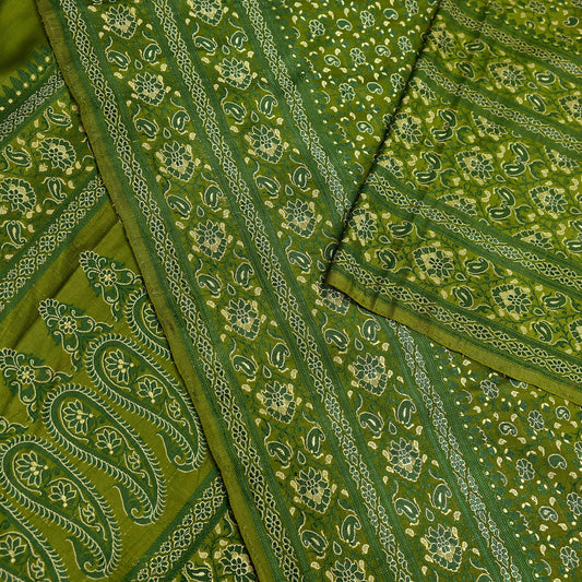 Indian Vintage Sari Green Heavy Pure Satin Silk Hand Woven Tanchoi Sarees Ethnic Wear 5Yd Paisley Craft Fabric Dress Making Crafting