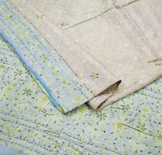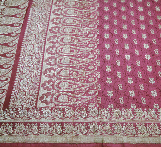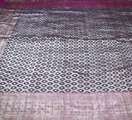 Indian Vintage Sari Dusty Purple Heavy Pure Silk Woven Brocade Saree 5Yard Floral Ethnic Soft
