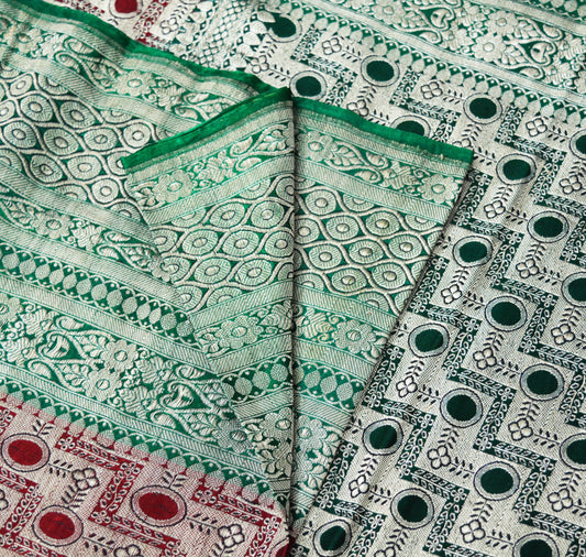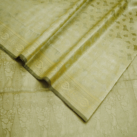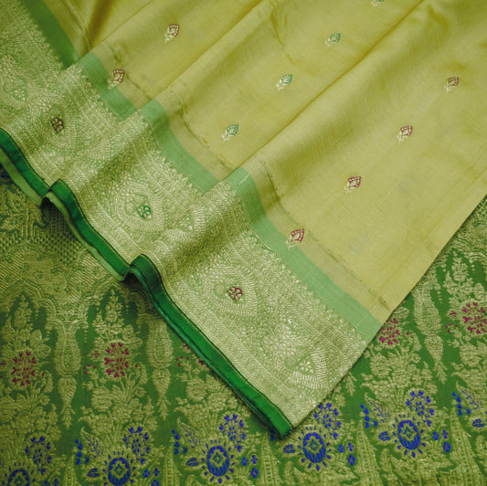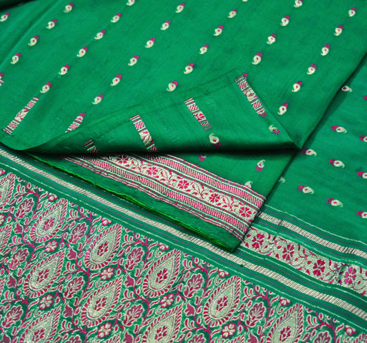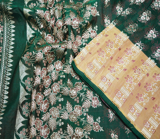 Indian Vintage Sari Green Heavy Wedding Pure Silk Woven Banarasi Brocade Saree Golden Zari 5Yard