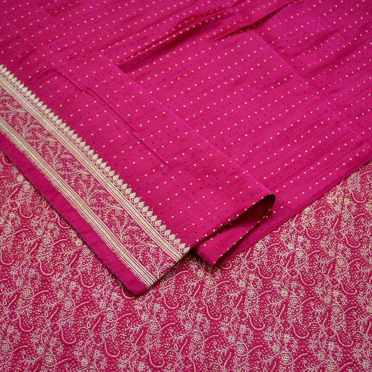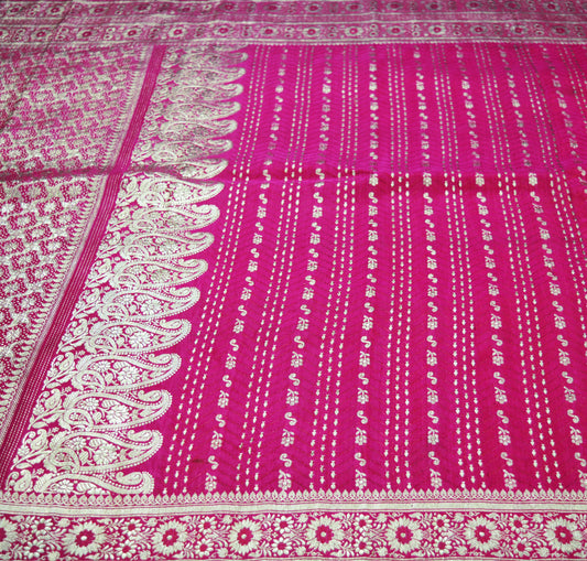 Indian Vintage SariHeavy Wedding Pure Satin Silk Rani Pink saree Banarasi Brocade Saree Golden Zari 5Yard