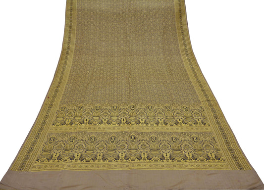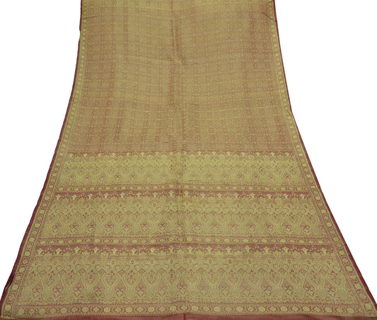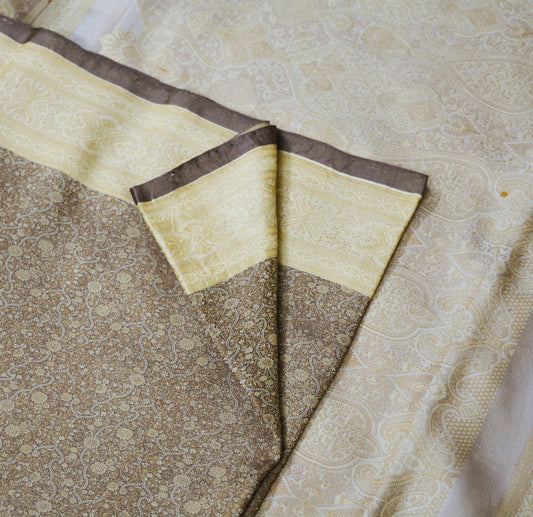 Indian Vintage Sari Brown Heavy Pure Satin Silk Woven Tanchoi Saree Craft Fabric Floral 5Yd Soft Dress making Crafting Quilting Upcycle