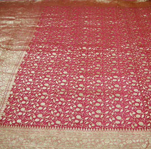 Indian Vintage Sari Heavy Wedding Pure Satin Silk Rani Pink Banarasi Brocade Sarees Zari 5Yd Ethnic Craft Fabric Upcycle Crafting used