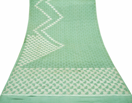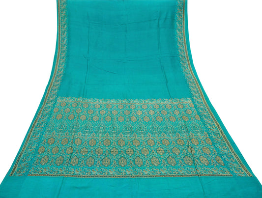 Indian Vintage Heavy Wedding Sari Teal Green Pure Satin Silk Woven Banarasi Tanchoi Sarees 5yd Craft Fabric Sewing Floral Quilting Upcycle