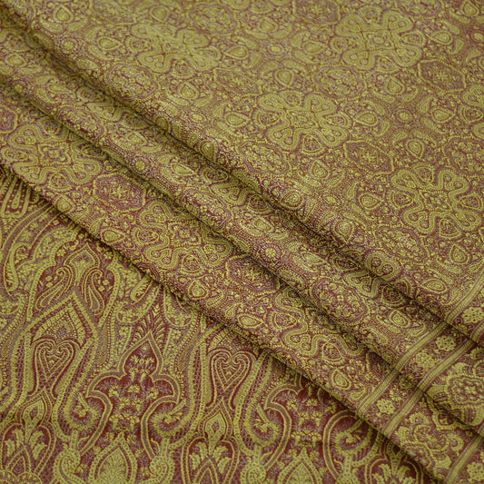 Indian Vintage Golden Maroon Heavy Wedding Saree Woven Brocade Banarasi Sari Craft Fabric Zari 5Yd Dress Making Quilting Upcycle Crafting