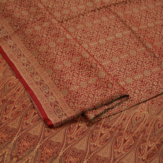 Indian Vintage Sari Dark Red Heavy Wedding Pure Satin Silk Woven Banarasi Brocade Saree Zari 5Yd Dress Making Craft Fabric Upcycle Crafting