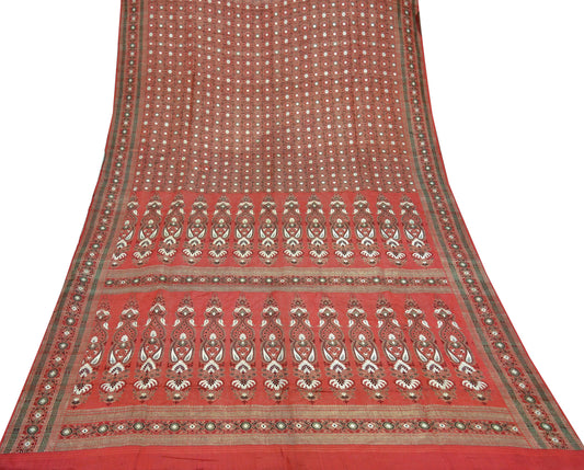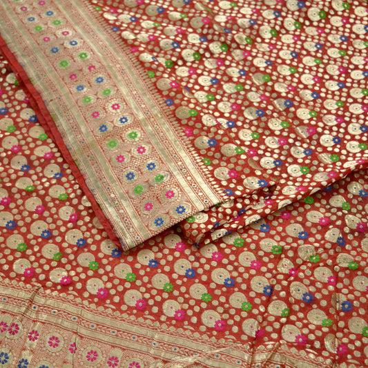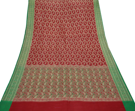 Indian Antique Vintage Heavy Sari Pure Satin Silk Red Hand Woven Banarasi Brocade Sarees Zari 5Yd Craft Fabric Ethnic Upcycle crafting Used