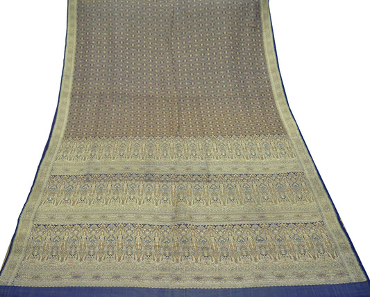 Indian Vintage Sari Brown Heavy Wedding Pure Satin Silk Woven Banarasi Brocade Saree Zari Ethnic 5Yard