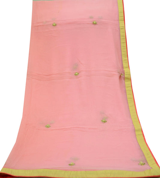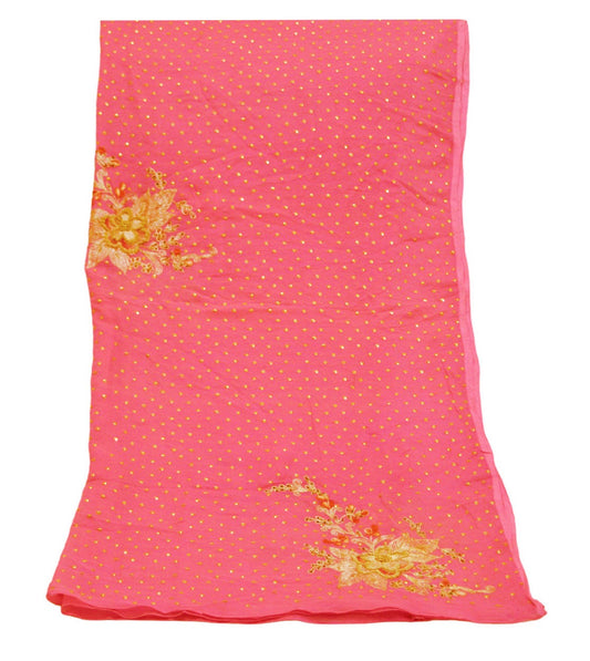Indian Vintage Pink Dupatta Pure Georgette silk Long Stole Hand Embroidered Scarves Stole Veil Wrap Sequins