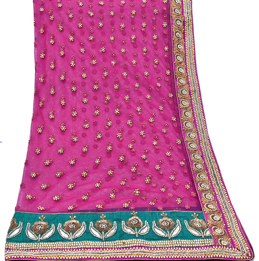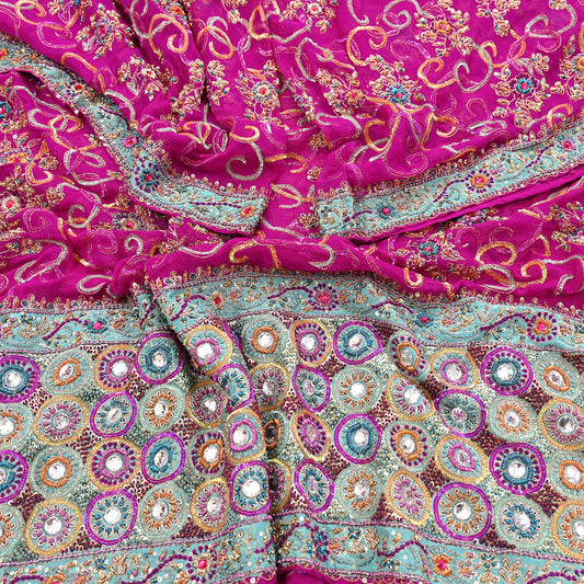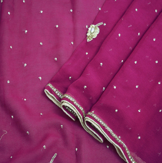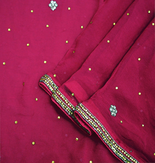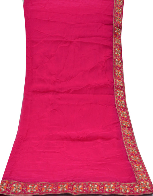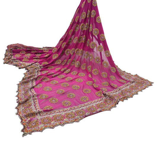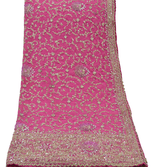 Indian Vintage Heavy Bridal Rani Pink Dupatta Pure Georgette Silk Long Stole Hand Embroidered Scarf Zardozi/Dabka Wedding red Hijab veil