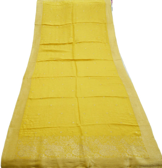 Indian Vintage Mustard Dupatta Long Stole Pure silk Woven Brocade Indian Scarves Veil Scarf Wrap Hippie Boho Soft Floral