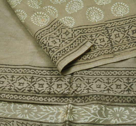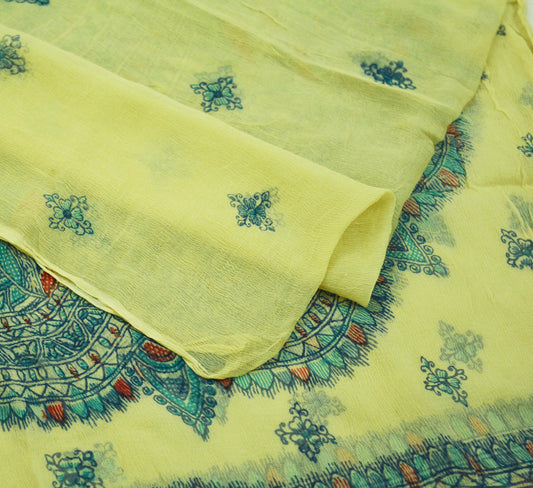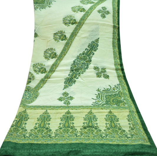 Women Indian Vintage Ivory & Green Dupatta Long Stole Pure Crepe silk Printed Dupatta Veil Scarves soft Boho Wrap Dressmaking Paisley
