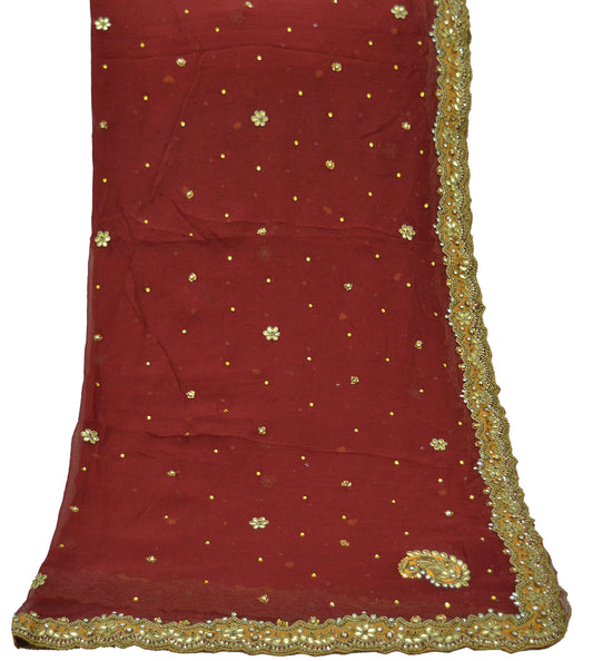 Indian Vintage Red Dupatta Pure Chiffon silk Long Stole Hand Embroidered Scarves Floral Design Stole Veil Wrap Zardozi/dabka Gota Patti
