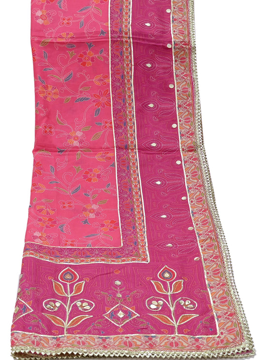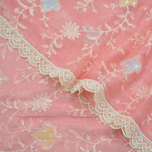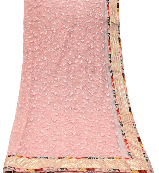 Indian Vintage Pink Dupatta Blend Chiffon Long Stole Embroidered Scarves Floral Design Stole Veil Wrap