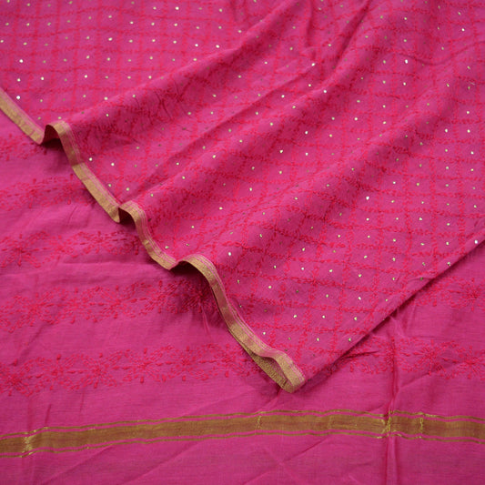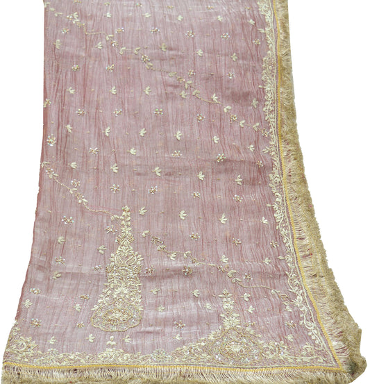 Indian Vintage Pink Dupatta Long Stole Hand Embroidered Mukesh Pure Chanderi Silk Scarves Veil Golden Zari Soft Fringes Zardozi/ Dabka