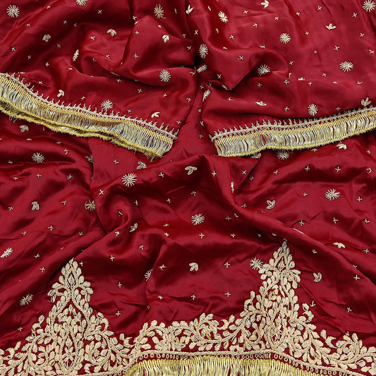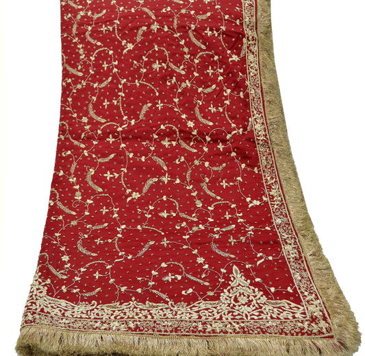 Indian Vintage Heavy Wedding Red Dupatta Pure Satin Silk Long Stole Hand Embroidered Scarves Golden Zardozi Bridal Heavy Dupatta hijab veil