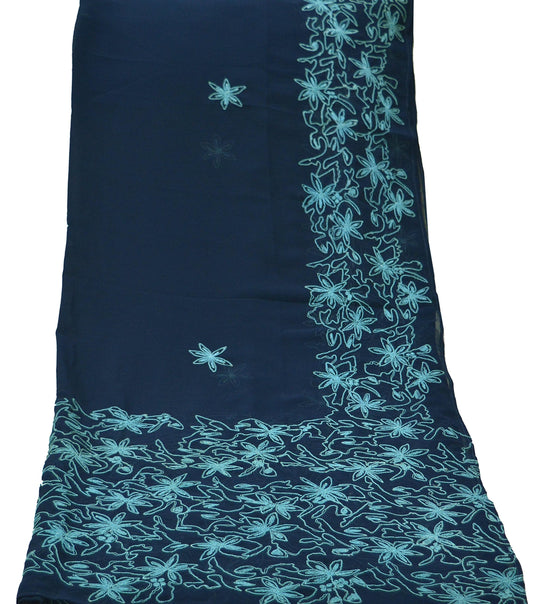 Indian Vintage Blue Dupatta Blend Georgette Long Stole Embroidered Scarves Floral Design Stole Veil Wrap Sequins