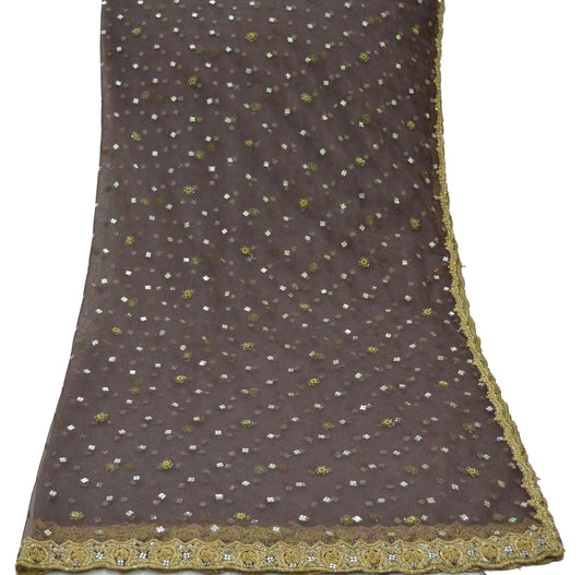 Indian Vintage Brown Dupatta Net Mesh Long Stole Hand Embroidered Scarves Golden Zardozi Zari Sequins Hijab Veil wrap Boho