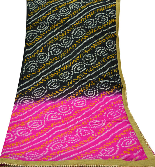 Women Indian Vintage Pink & Black Dupatta Long Stole Pure silk Bandhani Dupatta Veil Scarves soft Boho Wrap
