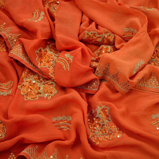 Indian Vintage Orange Dupatta Pure Georgette silk Long Stole Hand Embroidered Scarves Stole Veil Wrap Sequins