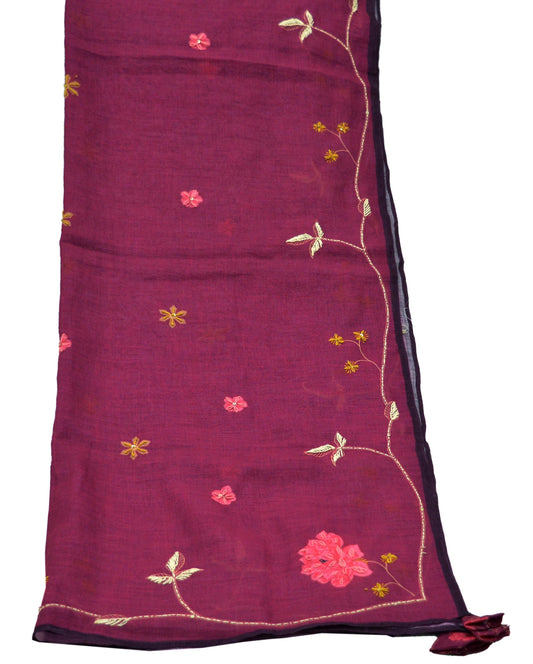 Indian Vintage Purple Dupatta Long Stole Embroidered Cotton Scarves Veil Soft Fringes