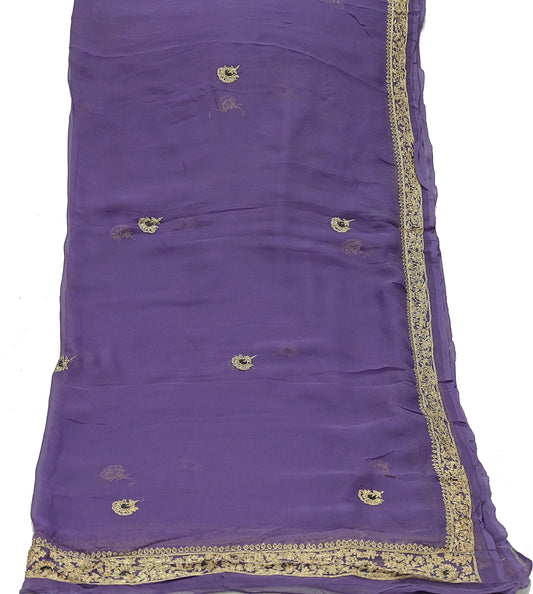 Indian Women Vintage Purple Dupatta Pure Chiffon silk Long Stole Hand Embroidered Hijab Scarves Veil Wrap soft Zari Zardozi