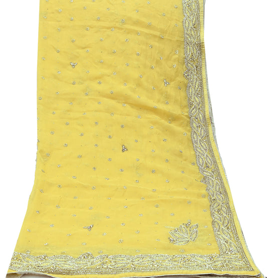 Indian Women Vintage Yellow Dupatta Pure Chiffon silk Long Stole Hand Embroidered Hijab Scarves Veil Wrap soft Zari