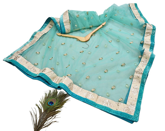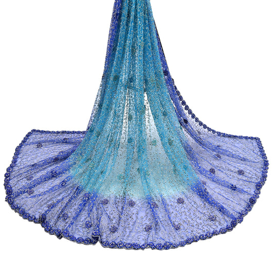Indian Vintage Heavy Blue Dupatta Net Mesh Long Stole Hand Embroidered Scarf Zardozi Zari Sequins Stole Bridal Veil